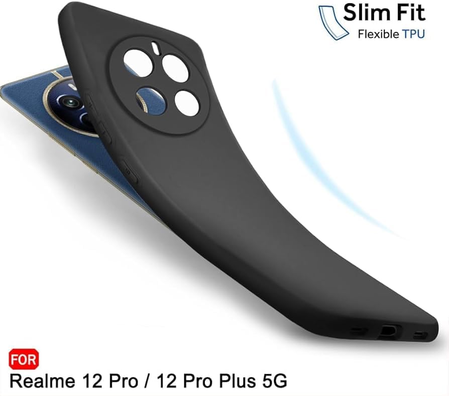 - [بولي يوريثين حراري عالي الجودة] مصنوع من مادة البولي يوريثين الحراري عالية الجودة، ناعم ومرن في الحمل، جراب أسود من البولي يوريثين الحراري مع مواد عالية الجودة لموبايل ريلمي 12 برو بلس / ريلمي 12 برو الجيل الخامس