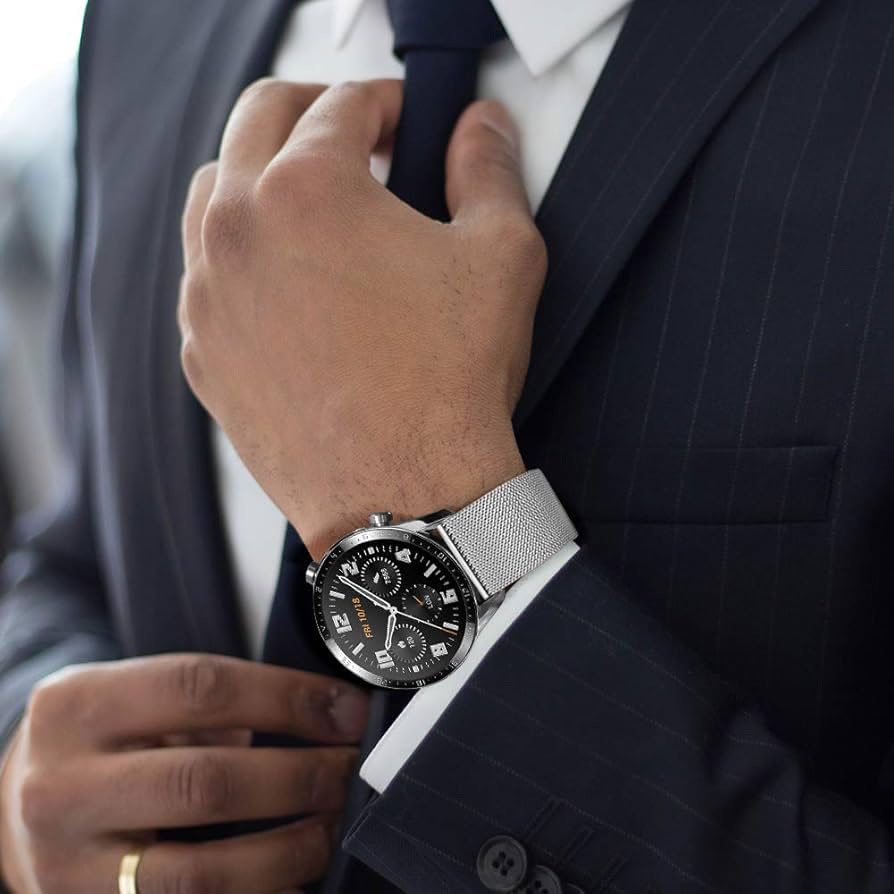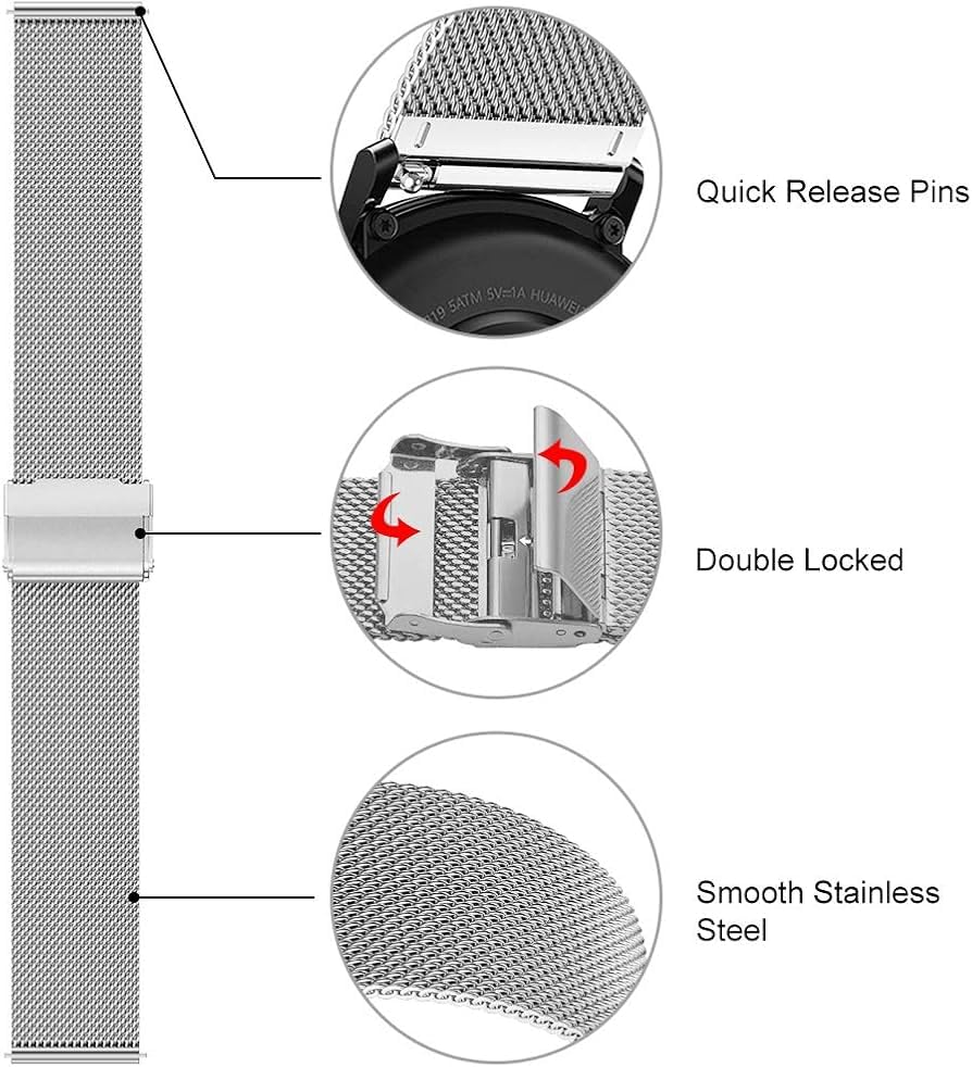سوار ساعة من الستانلس ستيل من الجوال متوافق مع ساعة هواوي جي تي 2 برو، جي تي 46 ملم، اكتيف، 2 كلاسيك، جالكسي ووتش 3 45 ملم، جير اس 3، 22 ملم