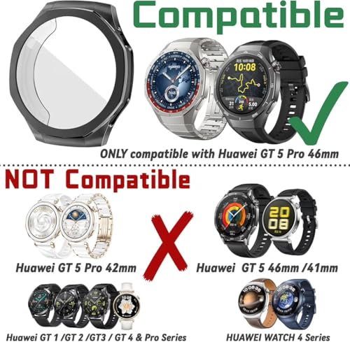 شاشة حماية من الجوال لساعة هواوي GT 5 46 ملم / GT 5 برو 46 ملم، طبقة واقية بحافة ناعمة منحنية ثلاثية الابعاد [مضادة للخدش] [خالية من الفقاعات] [مقاومة للكسر للغاية] [حساسية عالية] (ليست زجاجية)