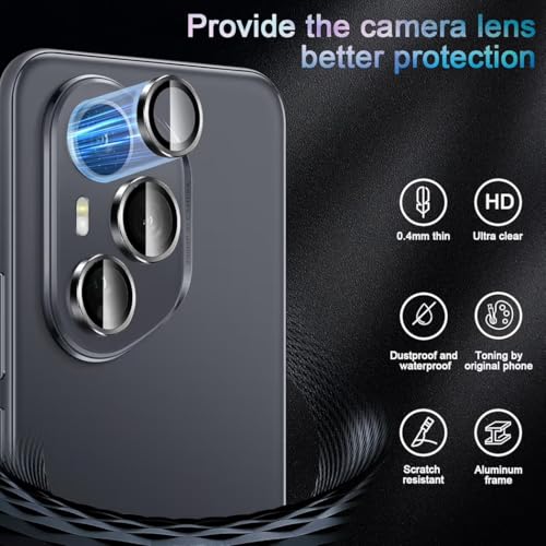 حلقة عدسة حماية للكاميرا معدنية من زجاج مقوى واقي لموبايل هونر 400 برو بدرجة صلابة 9H، طبقة عدسة فردية عالية الدقة HD ومضادة للخدوش، أسود