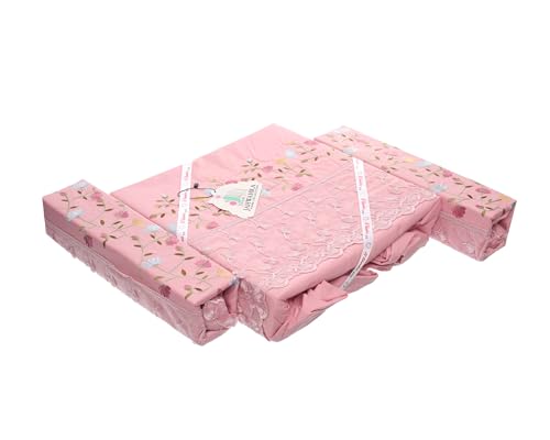 Egyptian Textile - الجوهرة طقم 4 قطع، ملاية مقاس 240×275 + 2 خدادية مقاس 50×70 + 1 مخدة مقاس 175×45، مطرز * جوبير قطن 100% معالج ضد الوبرة والانكماش، "بصلي" - 18051
