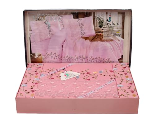 - الجوهرة طقم 4 قطع، ملاية مقاس 240×275 + 2 خدادية مقاس 50×70 + 1 مخدة مقاس 175×45، مطرز * جوبير قطن 100% معالج ضد الوبرة والانكماش، "بصلي" - 18051