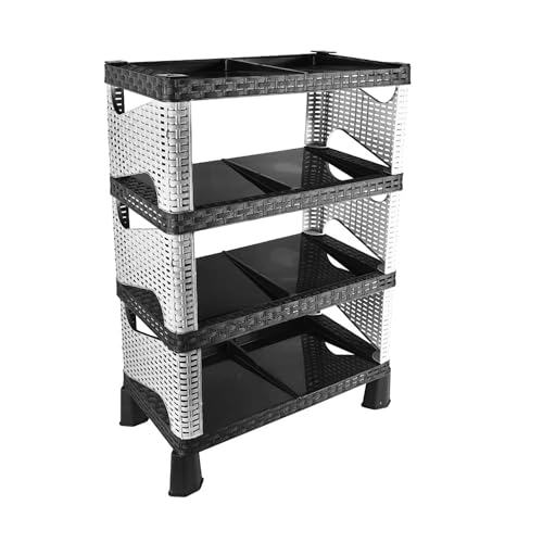 El Helal & Star - ارفف بلاستيك لتخزين الاحذية من الهلال والنجمة، 32×79 سم - اسود وفضي