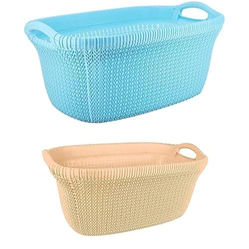 El Helal and Golden star - طقم سبت غسيل بيضاوي منسوج تركواز + سبت غسيل بيضاوي منسوج بيج من الهلال والنجمة