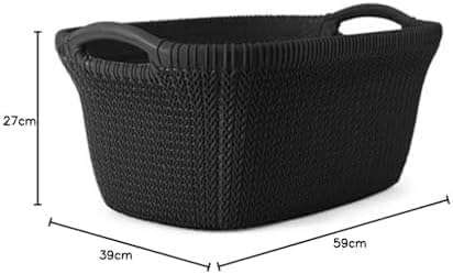 - التصميم: سبت غسيل أنيق بيضاوي الشكل مع نسيج محبوك معقد ومقابض مدمجة مزدوجة لسهولة الحمل.
