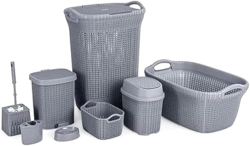 - مجموعة كاملة: مجموعة تنظيم الحمام المكونة من 8 قطع بما في ذلك سلة الغسيل وصناديق التخزين وحامل فرشاة المرحاض وموزعات الصابون لون رمادي أنيق