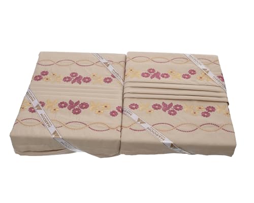 Egyptian Textile - المارون طقم 6 قطع، 2 ملاية مقاس 240×200 + 2 خدادية مقاس 60×70 + 2 مخدة مقاس 120×45، مطرز مخلوط 70% قطن 30% بوليستر معالج ضد الانكماش والوبرة، "كافيه" - 18477