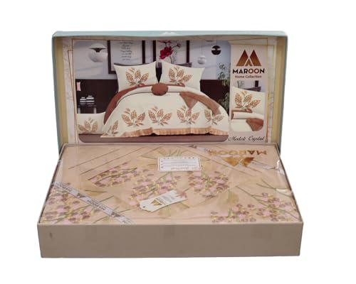 - المارون طقم 4 قطع، ملاية مقاس 240×260 + 2 خدادية مقاس 55×70 + 1 مخدة مقاس 160×45، مطرز مخلوط 70% قطن 30% بوليستر معالج ضد الانكماش والوبرة، "كافيه" - 18476