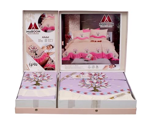 - المارون طقم 4 قطع، ملاية مقاس 240×260 + 2 خدادية مقاس 55×70 + 1 مخدة مقاس 160×45، مطرز مخلوط 70% قطن 30% بوليستر معالج ضد الانكماش والوبرة، "بدي موف" - 18176