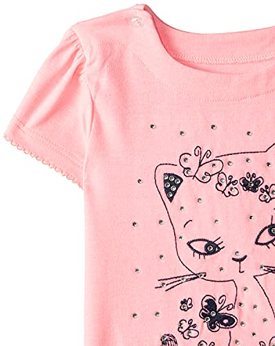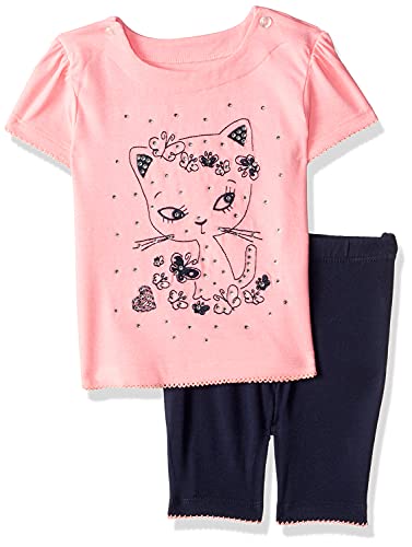 Elsayaad - طقم بيجامة تيشيرت برقبة دائرية واكمام قصيرة بتطريز شكل قطة مع بنطلون للبنات من الصياد - 3 - 6 اشهر