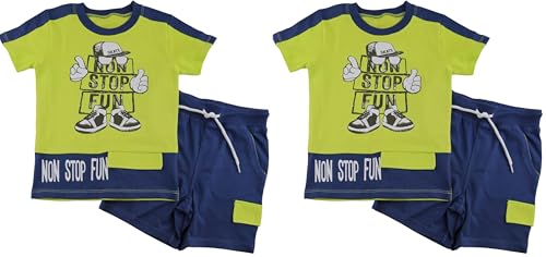 Elsayaad - طقم بيجامة للأولاد بطبعة عبارة «No Stop Fun » من الصياد، لون أصفر فاتح، 7 سنوات (عبوة من قطعتين)