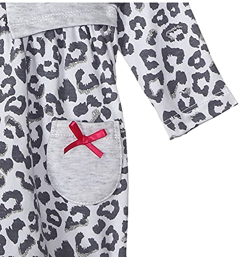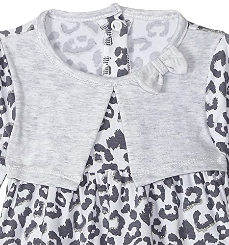 Elsayaad - فستان منقوش برقبة دائرية مزينة بفيونكة واكمام طويلة بجيوب امامية للبنات من الصياد - رمادي، 9-12 اشهر، 9 - 12 شهر