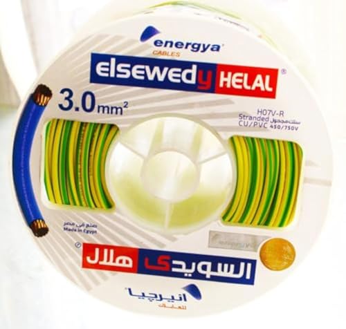 ElSewedy LED - بكرة أسلاك نحاسية كهربائية مضفرة من السويدي، رول سلك نحاسي كهربائي مضفر 2 ملم × 100 متر، أخضر/أصفر
