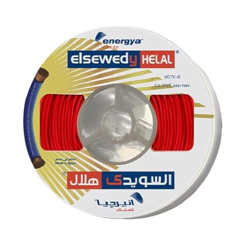 ElSewedy LED - سلك كهرباء نحاس مضفر سويدي انيرجي من السويدي، قطر 2 ملم، لون أحمر