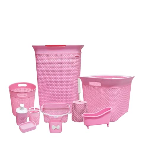 EL Watania - طقم سلال فيلو من 10 قطع يتضمن: 2 سلة ملابس بغطاء و1 مهملات و1 فرشاة تواليت و1 موزع صابون و1 حامل و4 متعددة الاستخدامات الوطنية