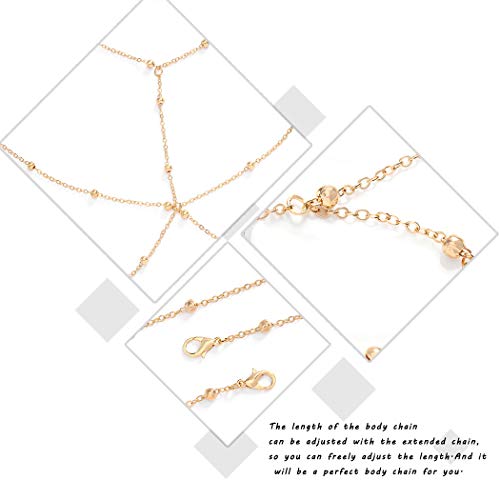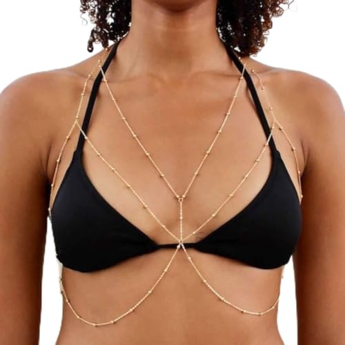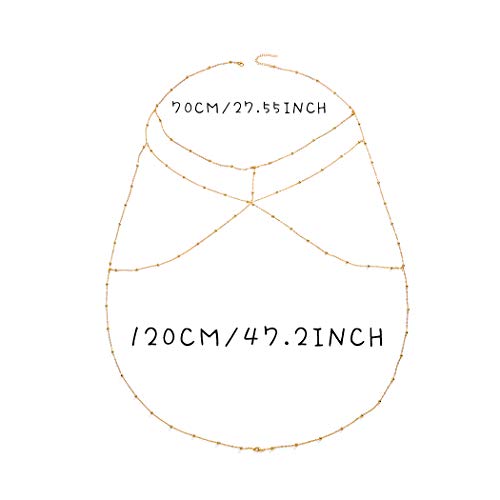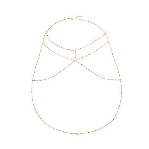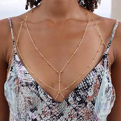 ELABEST - سلسلة صدر بلون ذهبي من الخرز البسيط من اي لابست، مناسبة كإكسسوارات مجوهرات الشاطئ للنساء والفتيات, معدن