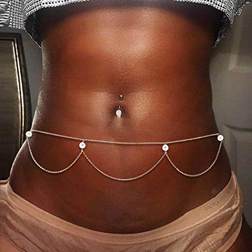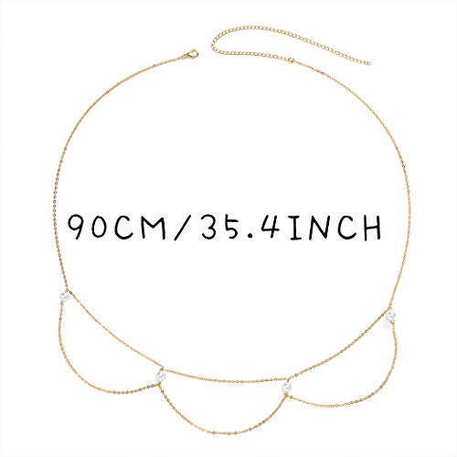 ELABEST - سلسلة خصر بسيطة مزينة بحبات لؤلؤ للنساء والفتيات من ايلابيست (ذهبي)