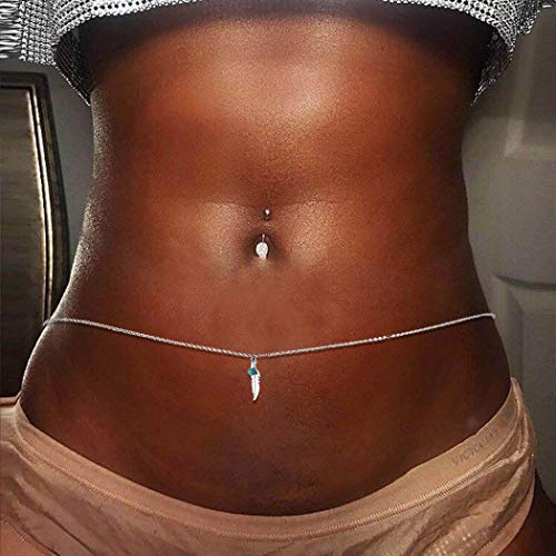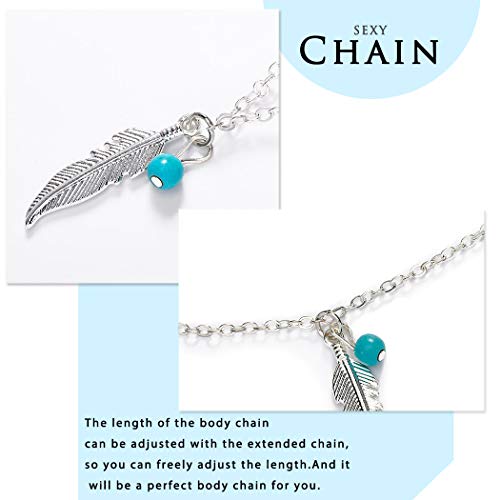 ELABEST - سلاسل بطن بسيطة من الريش للسيدات والفتيات من ايلابيست (فضي، تركواز، 41.33 انش)