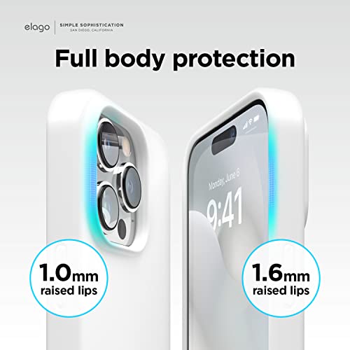 elago - ايلاغو جراب حماية من السيليكون السائل الممتاز بحماية كاملة للهيكل 4 طبقات مضاد للصدمات ومضاد للخدش وبطانة مايكروفايبر ناعمة مضادة لموبايل ايفون 14 برو 6.1 بوصة ابيض