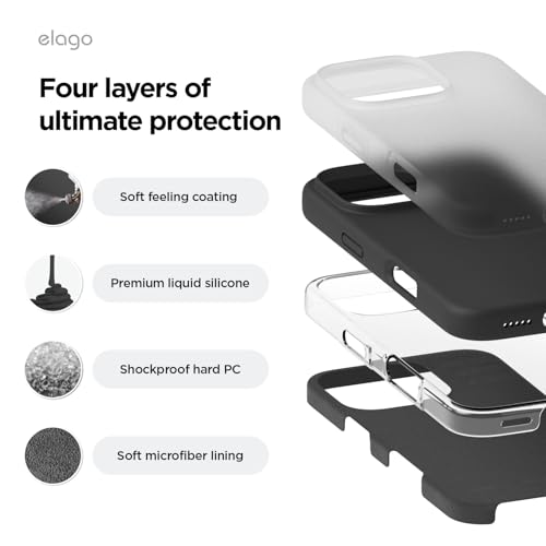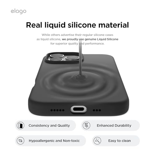 elago - جراب حماية خلفي رفيع مضاد للخدش ومقاوم للصدمات من السيليكون السائل مع بطانة من المايكروفايبر متوافق مع موبايل آيفون 16 برو من ايلاجو - (لون أسود)