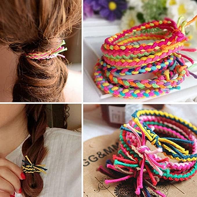 Generic - توك شعر مرنة من 6 قطع بتصميم مطاطي وبدون تجاعيد مع حبل لتسريحة ذيل الحصان واكسسوارات الشعر للبنات والنساء (متعددة الالوان)