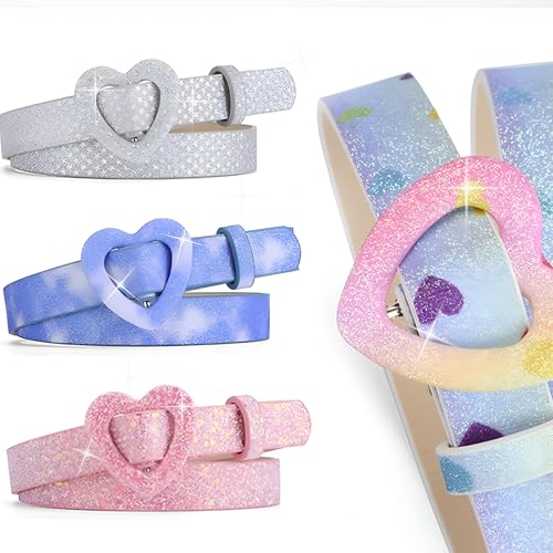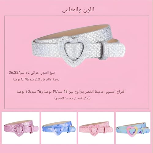 Generic - حزام مرن على شكل قلب - حزام انيق قابل للتعديل من جلد البولي يوريثين مع ابزيم على شكل قلب مصمم للبنات، مثالي للجينز والتنانير والسراويل الرسمية