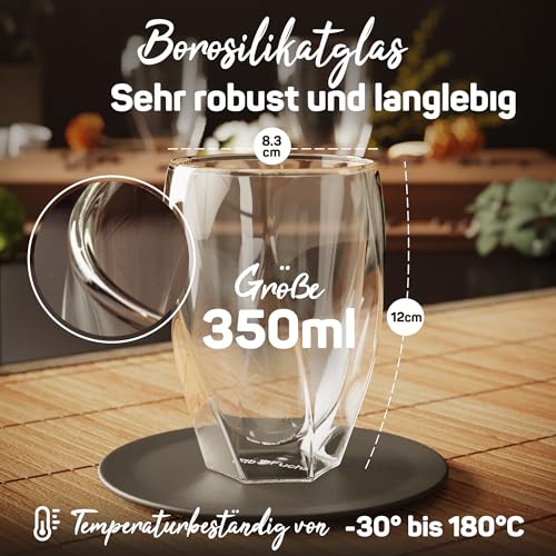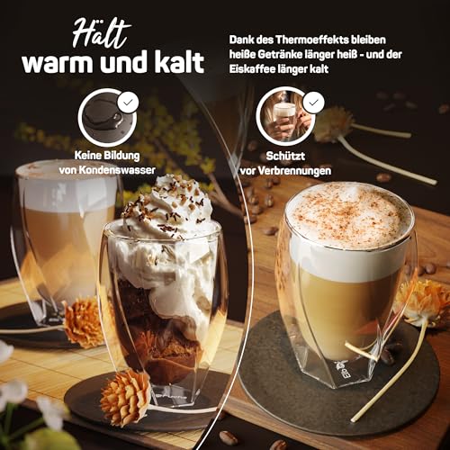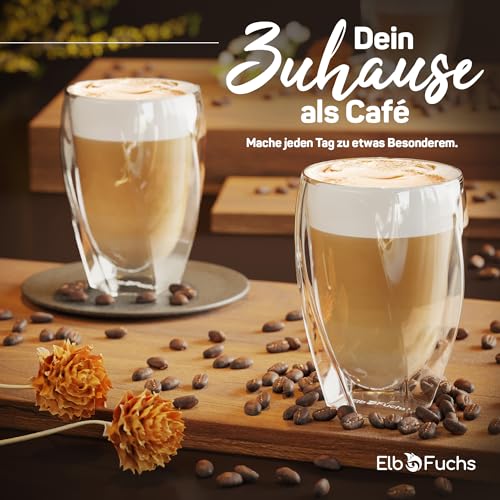 ElbFuchs - أكواب لاتيه ماكياتو مزدوجة الجدران بتصميم منحني من البفوكس® أكواب حرارية شفافة مزدوجة الجدران لتقديم الشاي والقهوة والكابتشينو، (2× 330 ملليلتر)