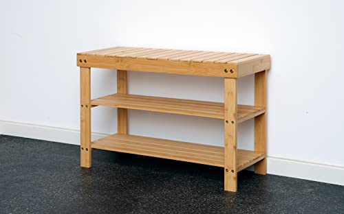 elbmöbel - رف احذية مع مقعد من الخيزران من البموبيل مقاس 70 × 28 × 45 سم مثالي للتلفزيون والحمام والرواق وغرفة المعيشة
