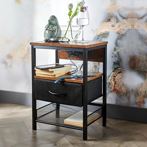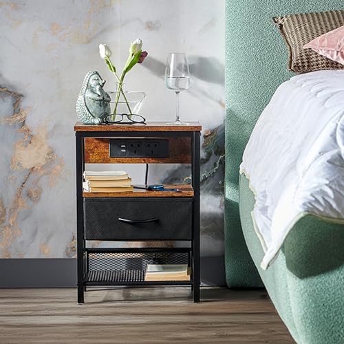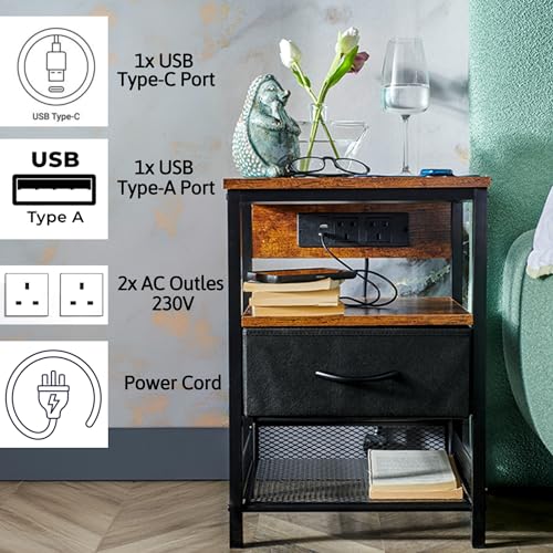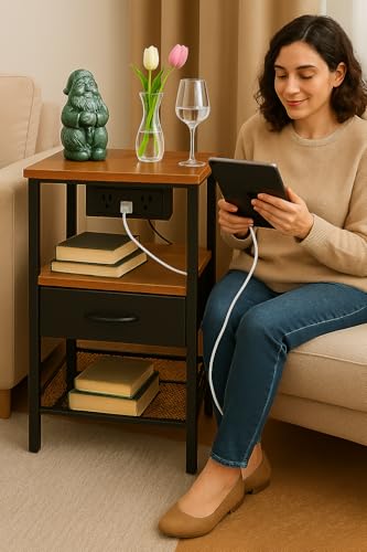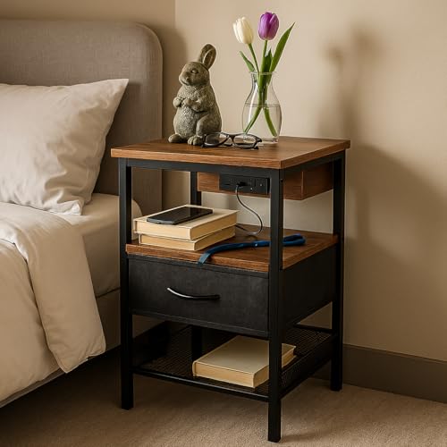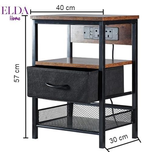 ELDA HOME - طاولة جانبية للسرير مع منفذ USB نوع C ومنفذ USB-A، طاولة جانبية للسرير مفردة مع محطة شحن لأثاث غرفة النوم، وطاولة جانبية وأدراج، ودواليب بجانب السرير، وطاولة كنبة لغرفة المعيشة من ايلدا هوم