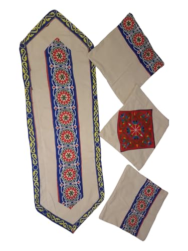Generic - رانر سفره من قماش الدك ديزاين رمضانية مقاس ١٤٠×٤٥ ٣ مخدات من قماش الدك ديزاين رمضان مقاس ٤٢×٤٢
