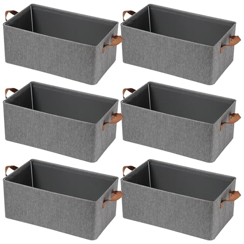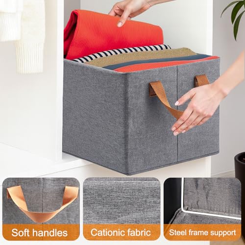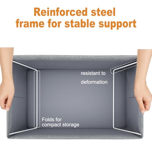 ELEANRA - منظم مكعبات تخزين بمقابض من اليانرا، صناديق تخزين قماشية قابلة للطي، سلال تخزين كبيرة للتنظيم والخزانة والارفف والمكاتب والالعاب (رمادي، 18.5 انش × 11 انش × 7.9 انش)