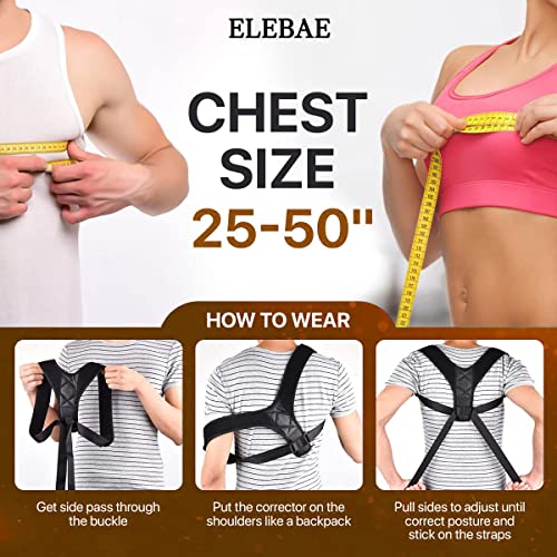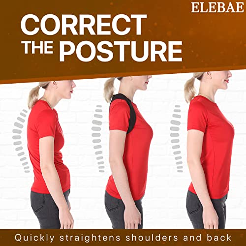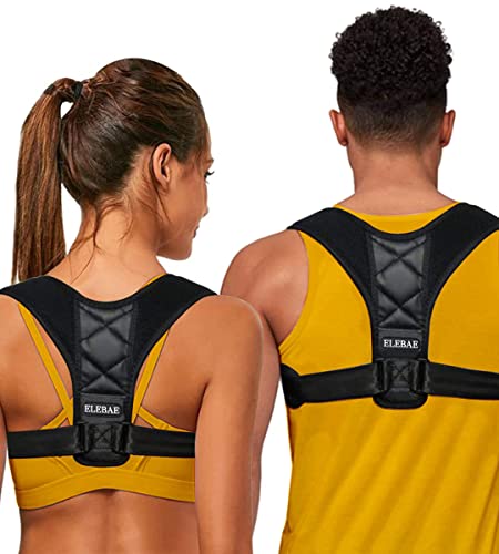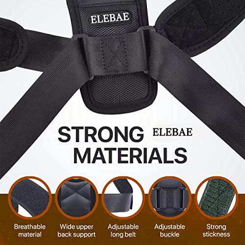 ELEBAE - مصحح وضعية الجسم للرجال والنساء من ايليباي، دعامة ظهر علوية قابلة للتعديل لدعم الترقوة وتوفير تخفيف الام الرقبة والظهر والكتف، البوليستر