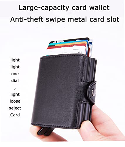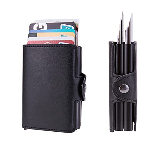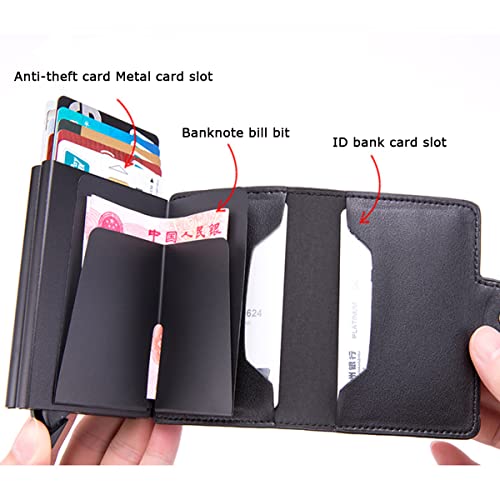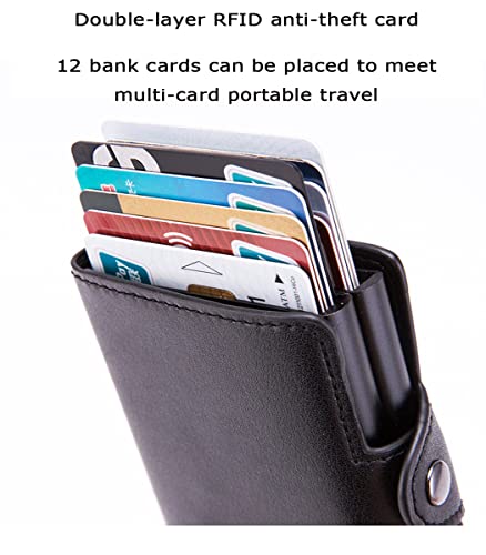 ELECDON - اليكدون حامل بطاقات ائتمان بتقنية حجب تقنية تحديد الهوية بموجات الراديو محفظة جلدية منبثقة تلقائية رفيعة بمشبك نقود مزدوج 12 بطاقة + اسود للكبار من الجنسين
