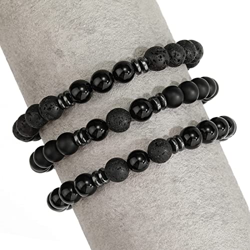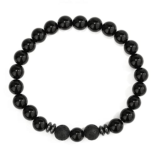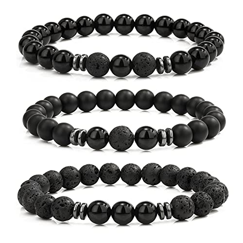 ELECDON - سوار خرز من حجر اللافا البركاني غير اللامع للنساء والرجال اليكدون قابل للتمدد