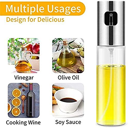 ELECDON - زجاجة بخاخ زيت زيتون وخل للطبخ من اليكدون زجاجي قابل للحمل للشواء والمقلاة الهوائية والخبز والتحميص والشواء قابلة لإعادة الملء سعة 100 مل