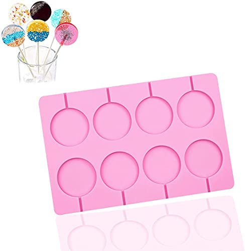 ELECDON - اليكدون قوالب مصاصات سيليكون، 8 قوالب دائرية للشوكولاتة والحلوى الصلبة، رائعة للمصاصات والحلوى الصلبة والشوكولاتة والكيك بوب (قطعة واحدة)