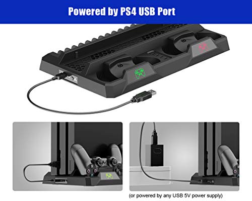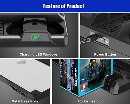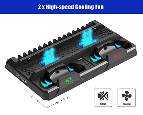 ElecGear - قاعدة شحن وحامل راسي لاجهزة PS4 مزودة بمروحة تبريد من اليك جير PlayStation 4 لاذرع تحكم دوال شوك بلاي ستيشن اماكن تخزين 16X العاب DVD اجهزةPS4 PS4 سليم PS4 برو ومجموعة الإكسسوارات