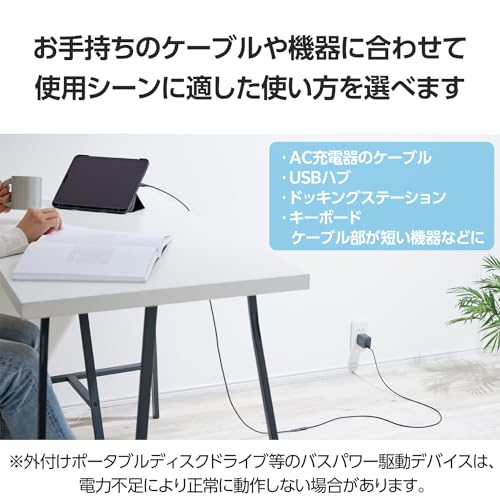 - بالإضافة إلى تمديد طول كيبل شاحن التيار المتردد باستخدام الكابل المدمج، يمكن استخدامه أيضًا للأجهزة ذات الكابلات القصيرة مثل موزعات USB ومحطات الشحن والكيبورد وما إلى ذلك، حتى تتمكن من توصيله بعيدًا عن جهاز الكمبيوتر الخاص بك