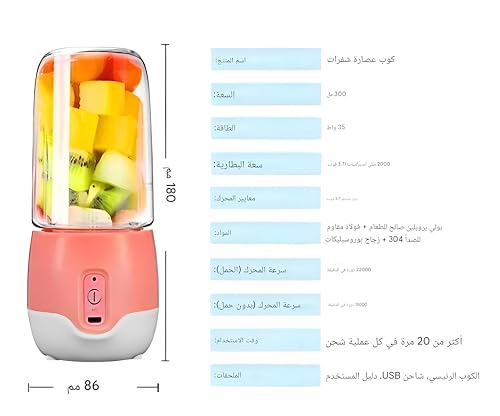 - استفد من تقنية USB المتقدمة القابلة لإعادة الشحن التي تتميز ببطارية مدمجة بسعة 2000 مللي أمبير في الساعة تعمل على تشغيل دورات مزج متعددة بشحنة واحدة. ما عليك سوى توصيل الجهاز بأي مصدر طاقة USB قياسي مثل اللاب توب أو الباور بانك أو محول الحائط لتحقيق شحن كامل في غضون ثلاث إلى أربع ساعات فقط. هذه الحرية اللاسلكية تلغي الحاجة إلى المنافذ الكهربائية، مما يجعلها مناسبة تمامًا للمغامرات الخارجية أو جلسات صالة الألعاب الرياضية أو مكاتب المكتب أو السفر حيث يمكنك الوصول إلى مصدر الطاقة التقليدي