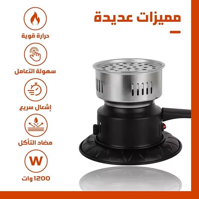 - 1200 وات من الطاقة: يوفر تسخينًا قويًا وفعالًا، ما يجعله مثاليًا لاحتياجات الطهي والتسخين المختلفة.