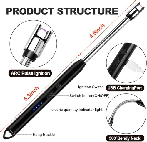 - 【فوهة طويلة ومرنة وتصميم مريح】 سواء كنت بحاجة إلى إضاءة شمعة أو شواية أو ألعاب نارية، فإن هذه الولاعة الفريدة ذات الفوهة الطويلة والمرنة تجعل من السهل الوصول إلى أصعب الأماكن. لا تقلق بعد الآن بشأن احتراق أصابعك واستمتع بالراحة التي توفرها.