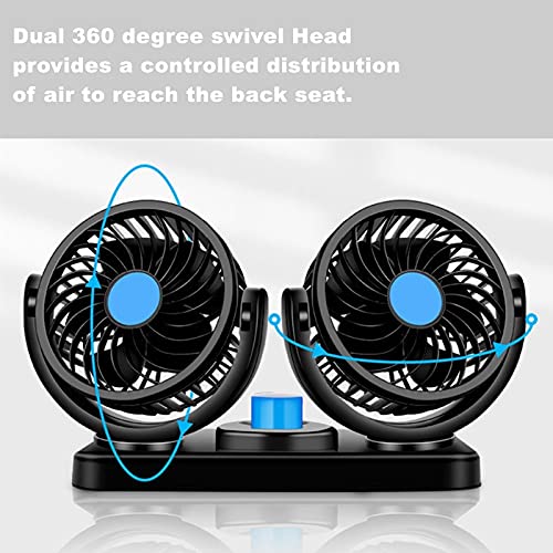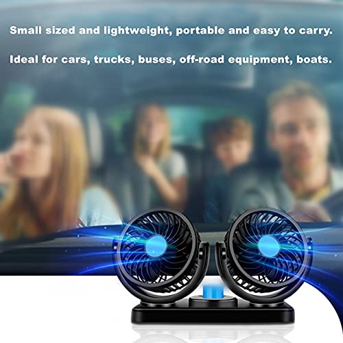 Other - مروحة هواء تبريد كهربائية مزدوجة وقابلة للدوران بزاوية 360 درجة لرأس السيارة، تلقائية العمل ومزودة بسرعتين 12 فولت، للشاحنة والسيارة والقارب، عدد المنافذ: 7، 6.5 واط، أسود وأزرق