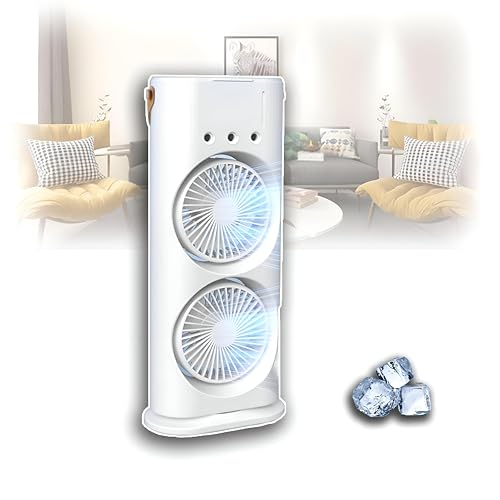 Generic - مروحة تبريد كهربائية - تدفق هواء قوي، مروحة رش قابلة لاعادة الشحن مع ثلاث فتحات، مروحة مكتب مزدوجة الراس مناسبة للاستخدام الداخلي والخارجي، ثلاثة اعدادات للسرعة للمكتب او غرفة النوم او السفر، ابيض