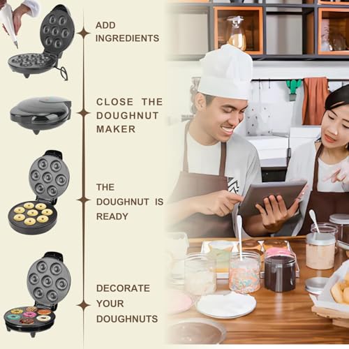 Generic - ماكينة صنع دوناتس كهربائية - طبخ 7 قطع دوناتس صغيرة - آلة محمولة مع وصفة دوناتس