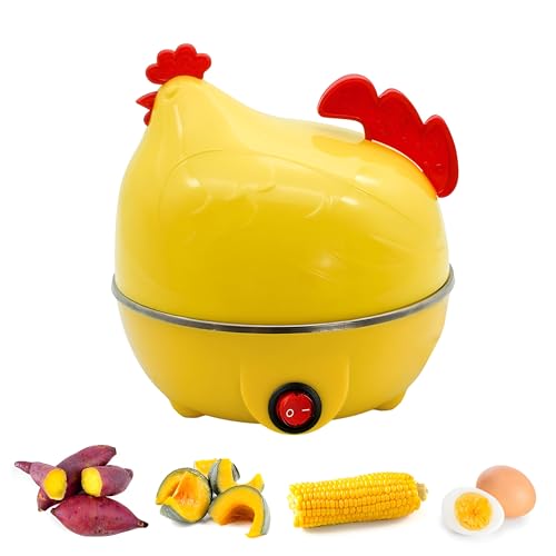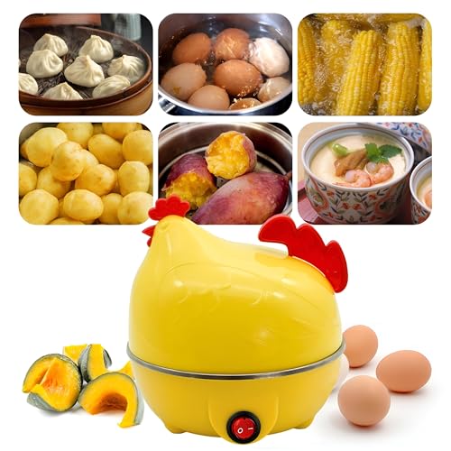 Generic - جهاز طهي بيض كهربائي صغير الحجم بسعة 7 بيضات للبيض الصلب والناعم والمسلوق مع وظيفة الاغلاق التلقائي وتصميم على شكل دجاجة لراحة المطبخ