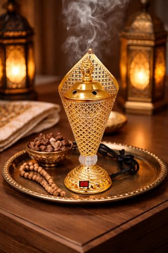 Generic - مبخرة كهربائية ذهبية بتصميم راقٍ – مثالية للعبادة واستقبال الضيوف