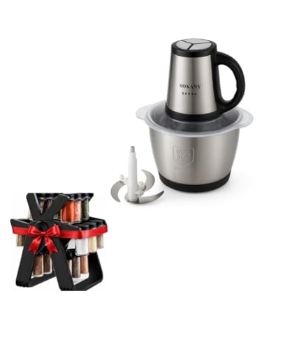 Generic - مفرمة طعام كهربائية، ستانلس ستيل فضي واسود، 3 تأتي مع رف توابل مجاني مكون من 18 قطعة، لتر، 800 واط، مع وعاء وشفرات من الستانلس ستيل