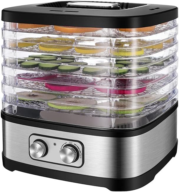 - مواد عالية الجودة: قاعدة من الستانلس ستيل المتين مع صواني شفافة تتيح لك مراقبة عملية التجفيف بسهولة دون الحاجة لفتح الجهاز
