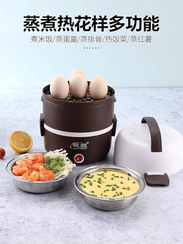 Generic - جهاز طهي طعام بالبخار كهربائي بسعة 2 ل وتصميم قابل للتكديس ذو 3 طبقات وقدرة 200W، أبيض وبني
