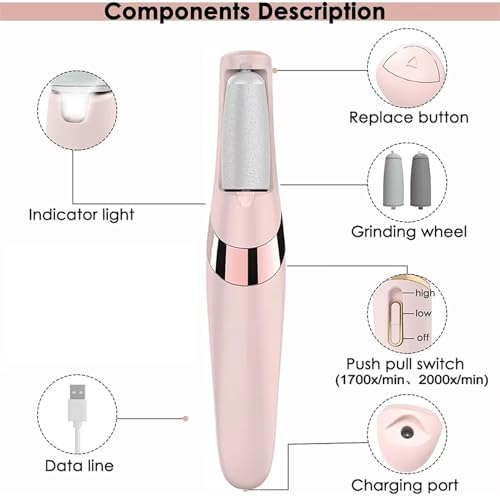 - مبرد كهربائي لإزالة الجلد الميت والمتشقق: مبرد قدم كهربائي يزيل بفعالية ولكن بلطف الجلد القاسي والميت، وجفاف القدمين للحصول على نعومة ملحوظة. احصل على كعوب وأقدام أكثر نعومة بشكل ملحوظ في دقائق دون ألم أو الذهاب إلى صالون التجميل؛ مما يجعله مزيلًا أساسيًا للجلد الميت للأقدام.
